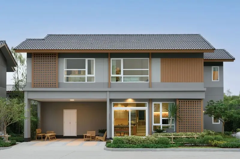สัมผัสวิถีชีวิตที่สงบ เรียบง่าย แต่มีสไตล์ กับบ้านดีไซน์ Modern Japanese ที่ออกแบบ Fa?ade ให้แต่ละหลังมีเอกลักษณ์ไม่ซ้ำกัน พร้อมฟังก์ชันที่ตอบโจทย์ครอบครัวยุคใหม่ ทั้ง 3 และ 4 ห้องนอน